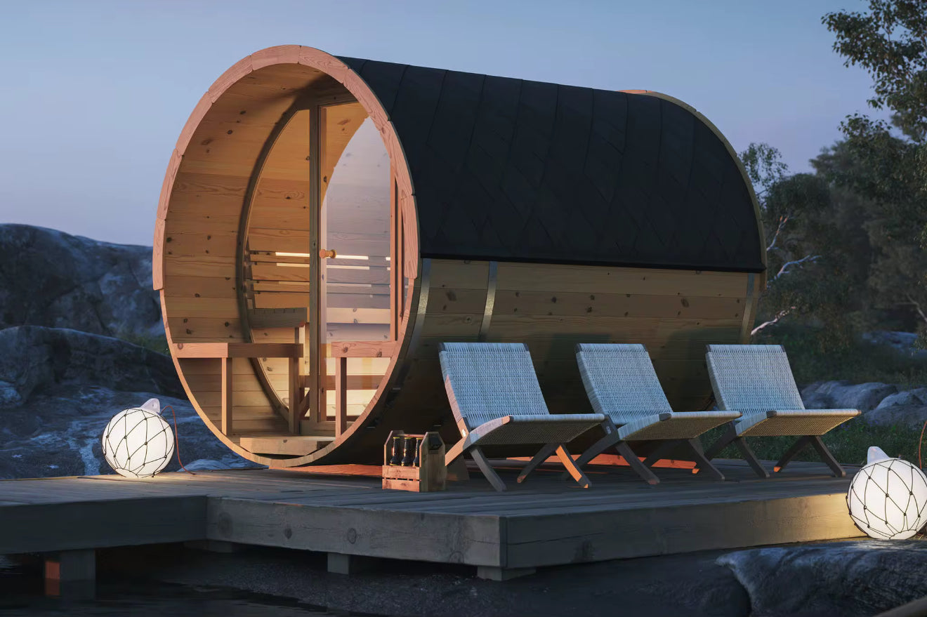 Experience authentic relaxation with our 4–6 person Red Cedar Barrel Sauna. Crafted from premium Western Red Cedar, this outdoor sauna blends rustic beauty with exceptional insulation. Its spacious, rounded design ensures efficient heat circulation—perfect for group sessions, detox, and recovery right in your backyard.